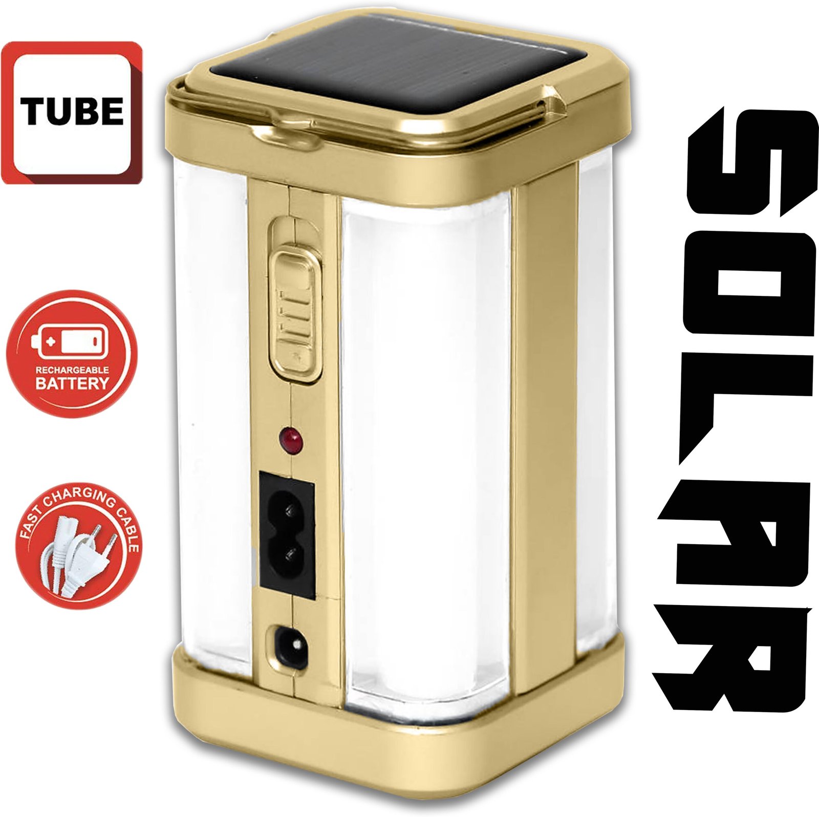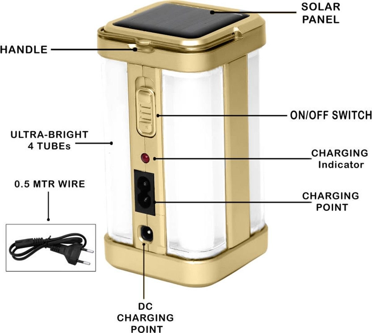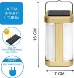 IDOLESHOP Home Emergency Light 4 Side Tube Solar Extra Bright Lantern – 7 hrs Backup (Golden)