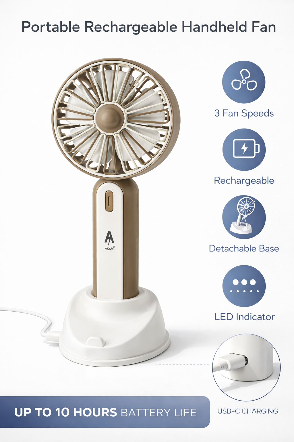 Idoleshop Mini Rechargeable Fan – Type-C Charging, Portable & Powerful