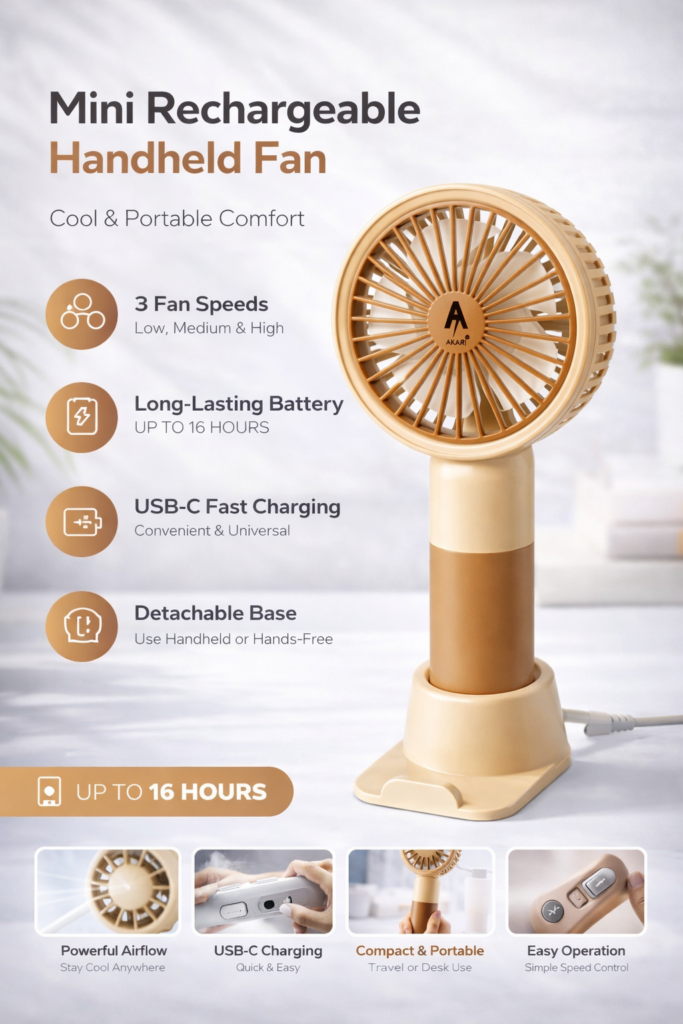 Idoleshop Mini Rechargeable Fan – Type-C Charging, Portable & Powerful