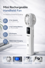 Compact yet powerful, this fan is designed for modern lifestyles—whether you’re commuting, working, or relaxing outdoors. The digital display and ergonomic controls make it user-friendly, while the sleek design adds a premium touch.