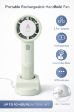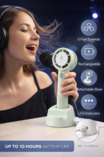 Stay cool anytime, anywhere with the Idoleshop Mini Rechargeable Handheld Fan. Designed with a powerful 5-blade system and modern features, this compact fan delivers strong airflow while remaining lightweight and easy to carry.