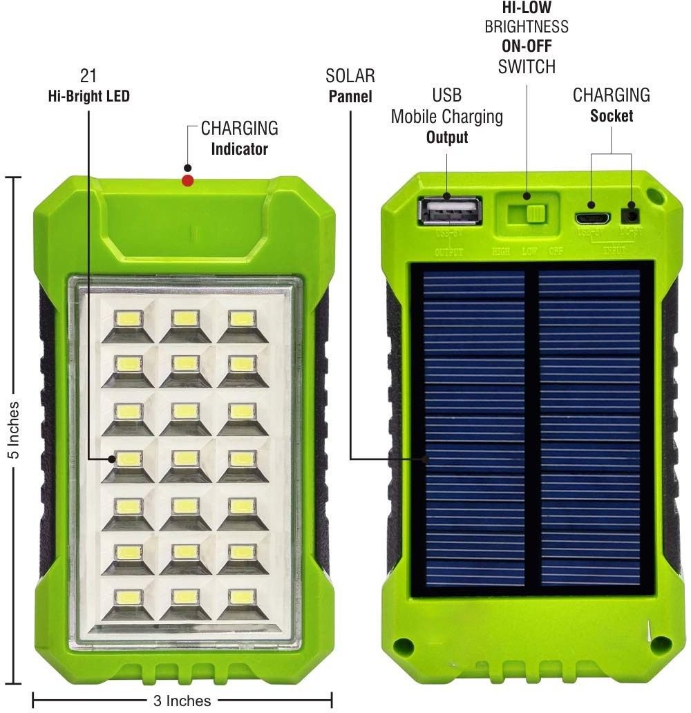 IDOLESHOP Power Bank Cum 21 High-Bright LED Rechargeable Solar Emergency Light (Green)