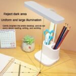 A sleek desk lamp with 3 brightness levels and a 360° adjustable arm. Features eye-care LED light, USB charging, and a built-in pen holder—perfect for study or office use.