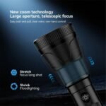 Powered by a high-intensity 50W LED, it delivers a strong and focused beam that reaches long distances with ease. The zoomable function allows you to adjust the focus from a narrow spotlight to a wide floodlight, giving you full control over your lighting needs.