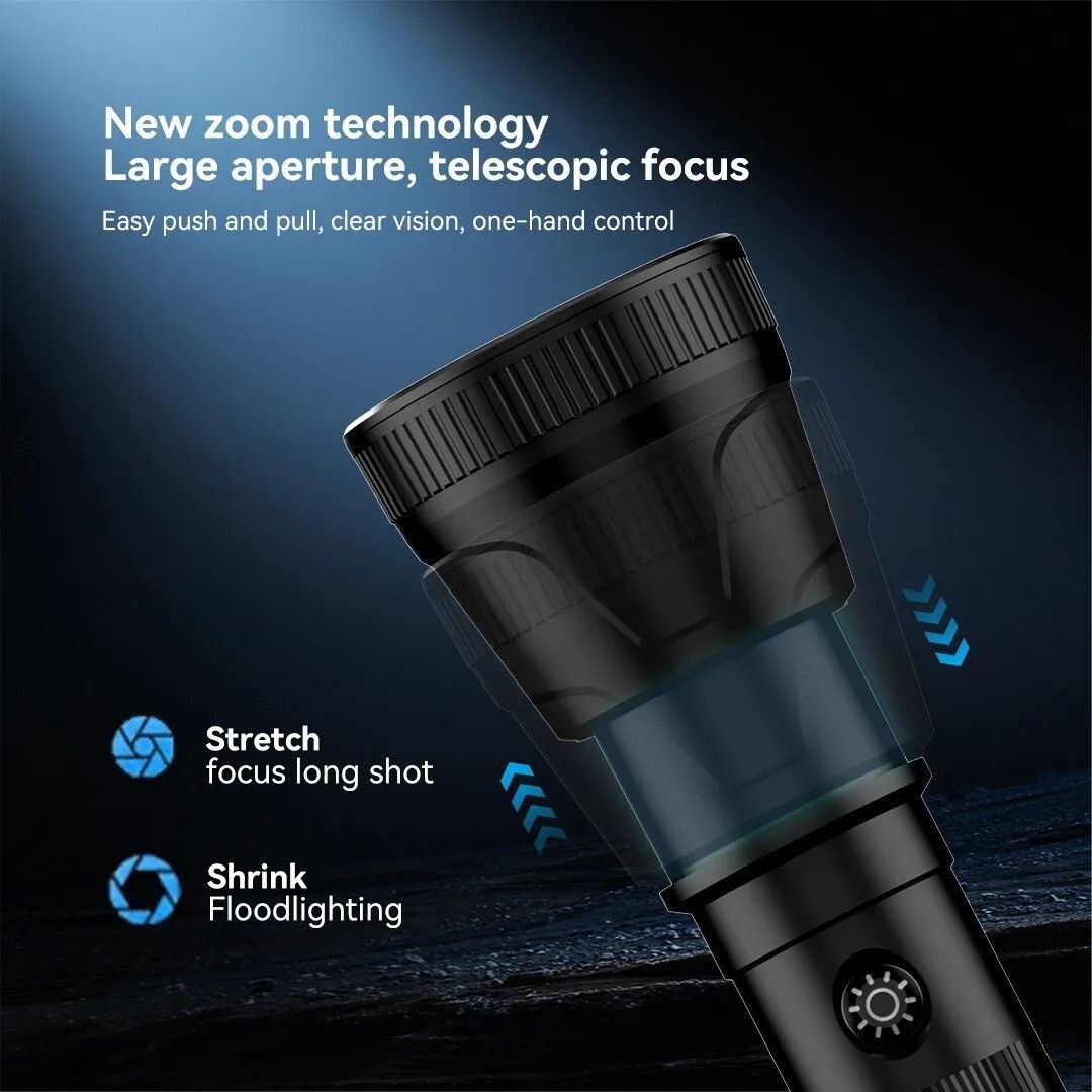 Stay prepared for any situation with the IDOLESHOP Zoomable 50W LED Torch, a powerful and multi-functional lighting solution designed for both home and outdoor use. Combining long-range performance with versatile lighting options, this torch is perfect for emergencies, travel, and everyday tasks.