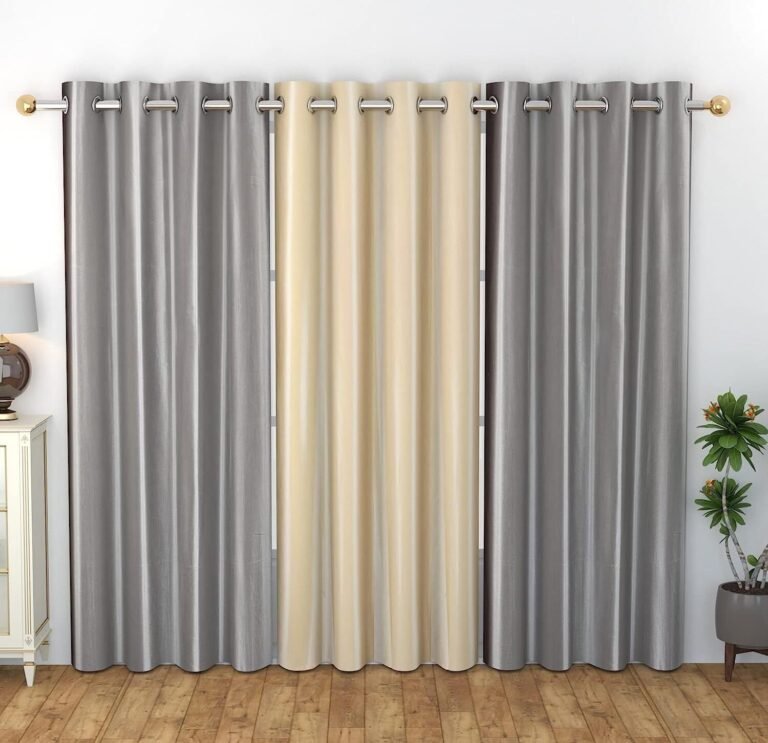 IDOLESHOP Premium 9 Feet Long Door Polyester Room Darkening Curtains | Elegant Solid Silver & Beige Curtains for Living Room & Bedroom | Eyelet Design | Pack of 3