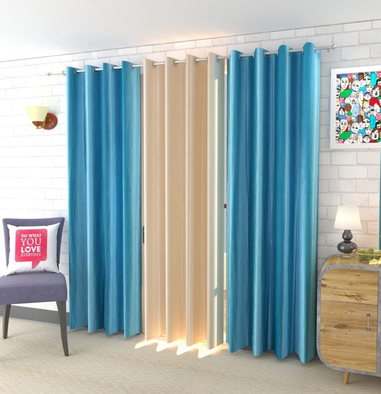 IDOLESHOP 213.5 cm (7 ft) Door Polyester Room Darkening Curtain (Pack of 3) (Sky Blue & Beige, Plain) – Elegant Modern Curtains for Home Décor