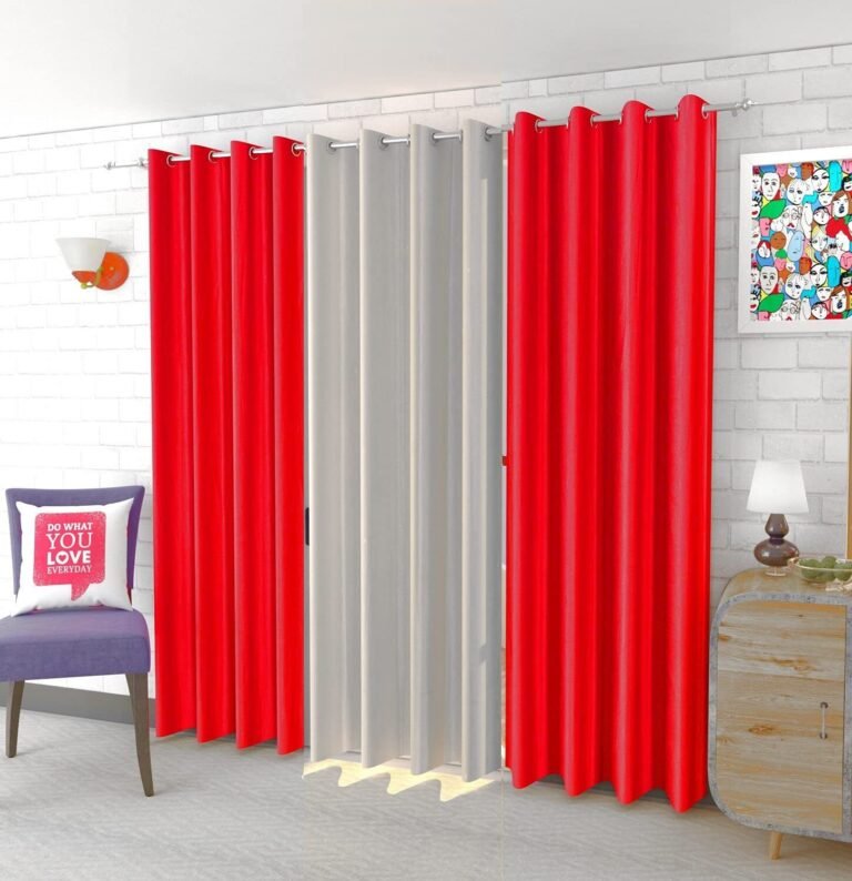 Premium IDOLESHOP 9 ft curtains in red and white, designed for style, privacy, and light control. Perfect long door curtains (Pack of 3).