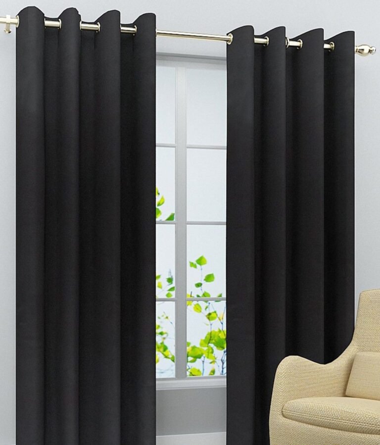 IDOLESHOP 274.5 cm (9 ft) Long Door Polyester Room Darkening Curtain Pack of 2 (Black, Solid Premium Design)